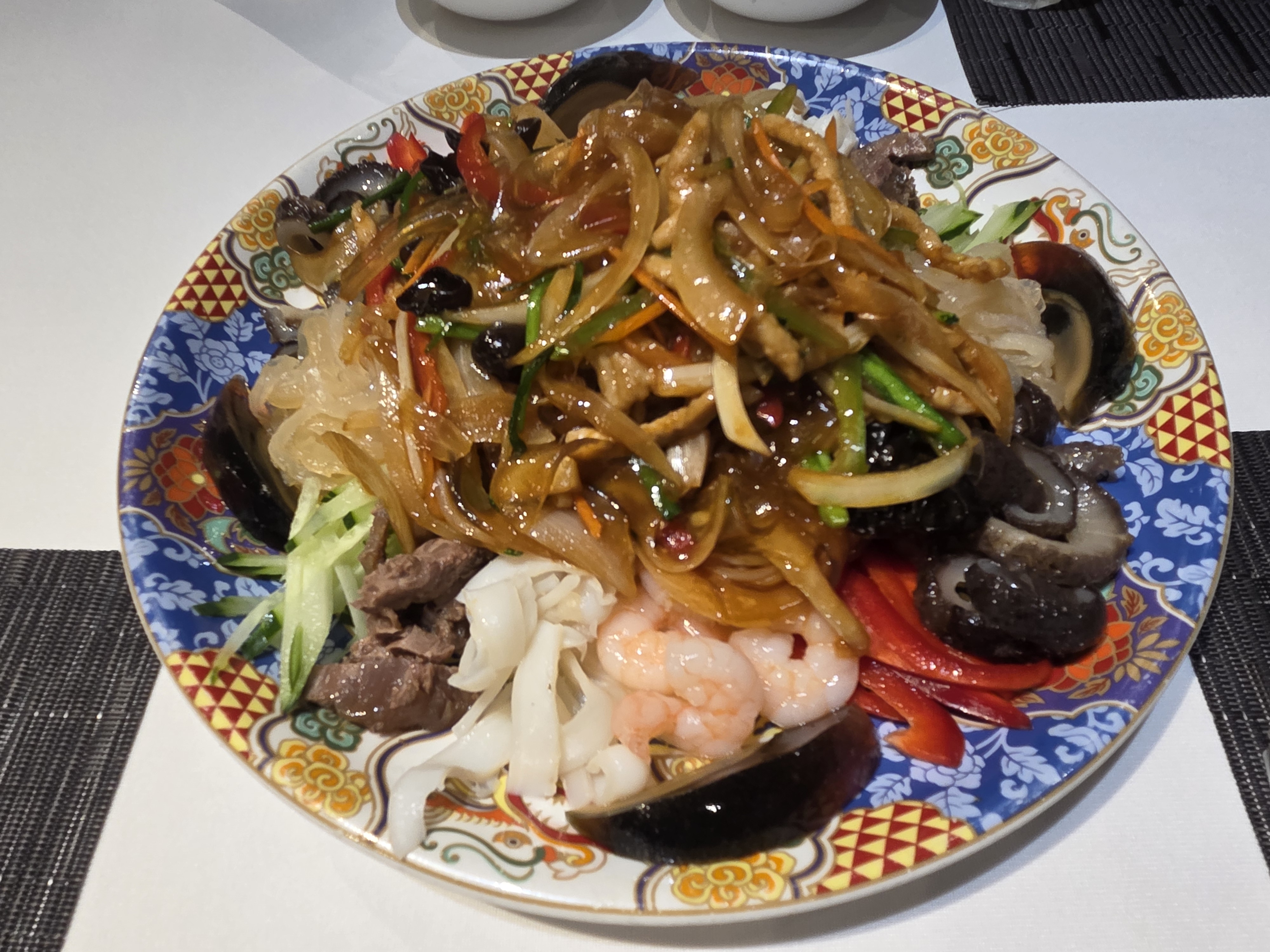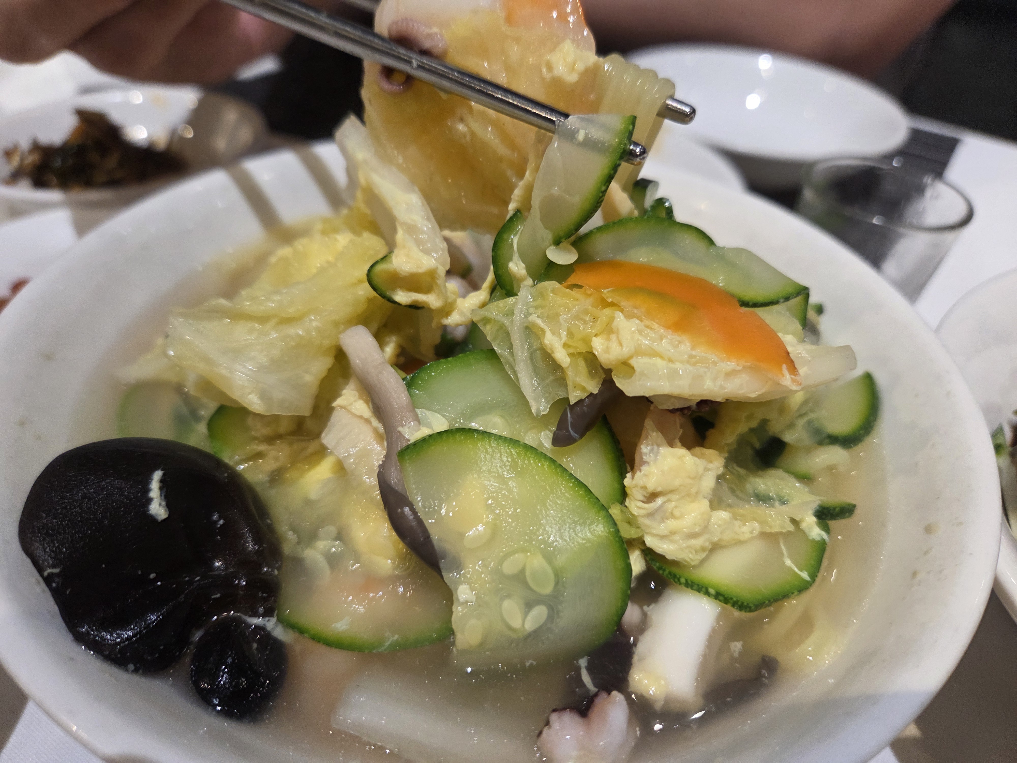각종 채소들과 홍함, 오징어, 새우 등이 들어간 우동이여라~