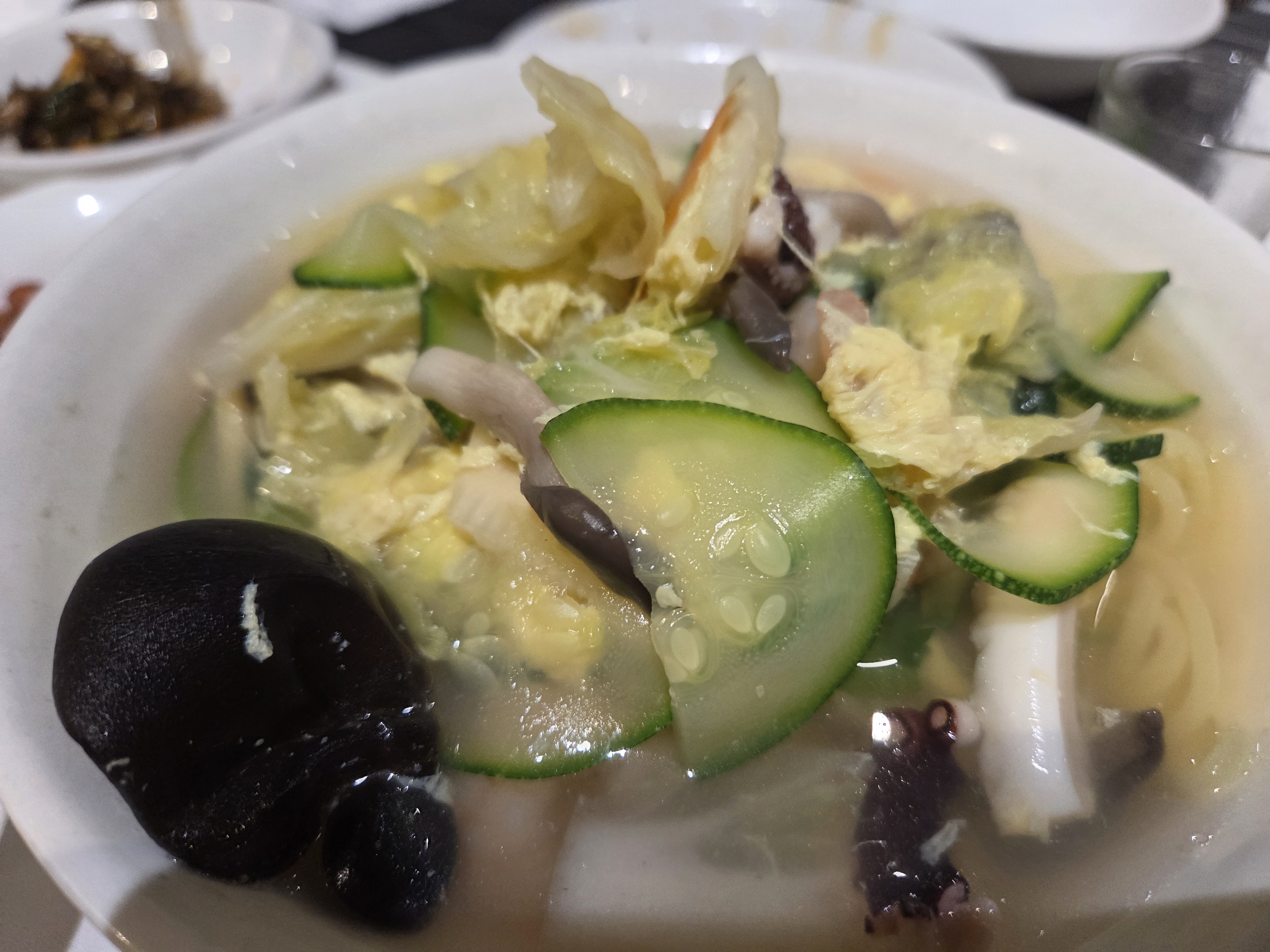 면 식감 좋고 국물은 아주 담백하다 못해 맑고 투명한 것이