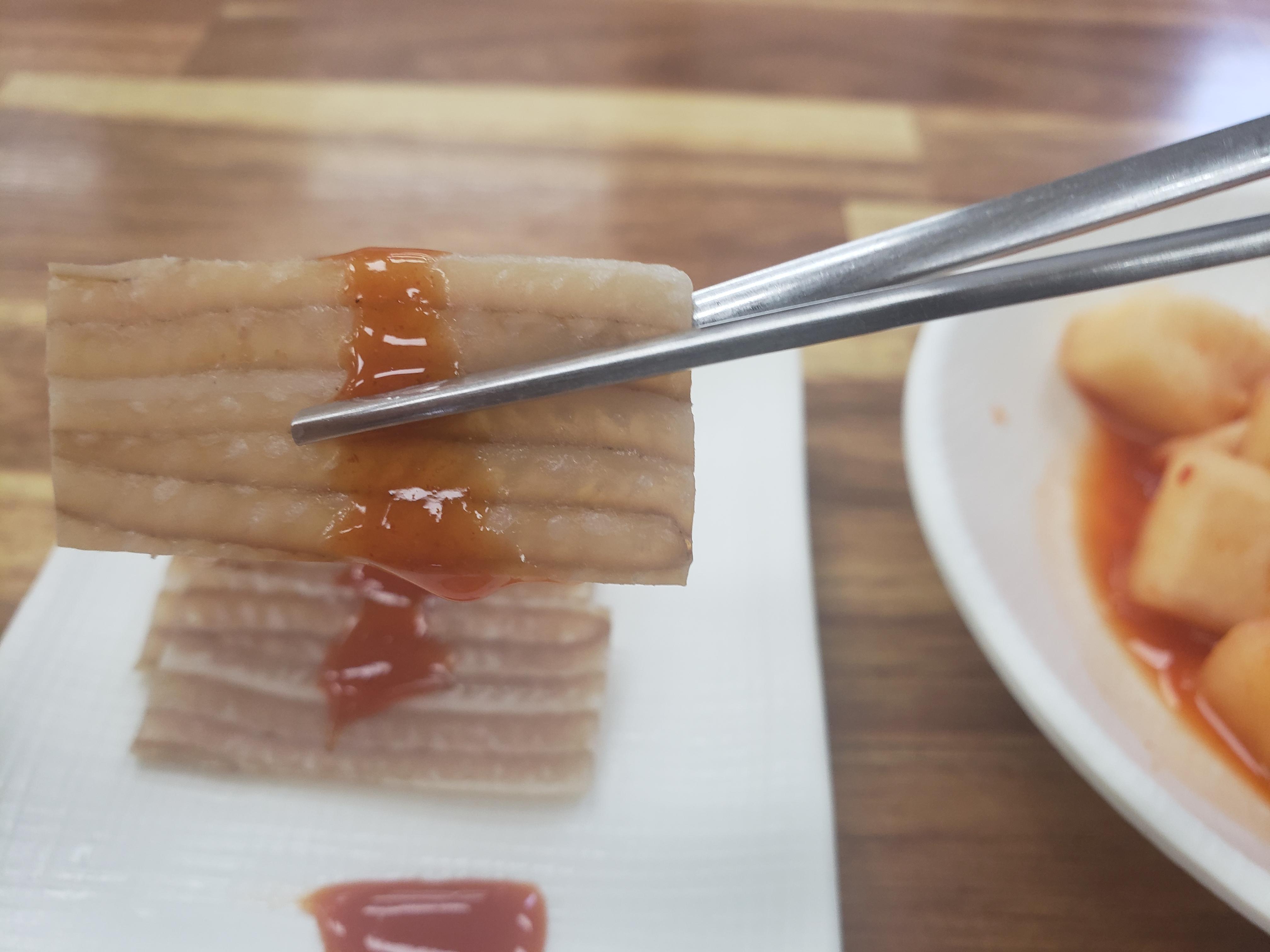 밑반찬으로 나온 돼지껍데기 편육을 맛 보았어용~