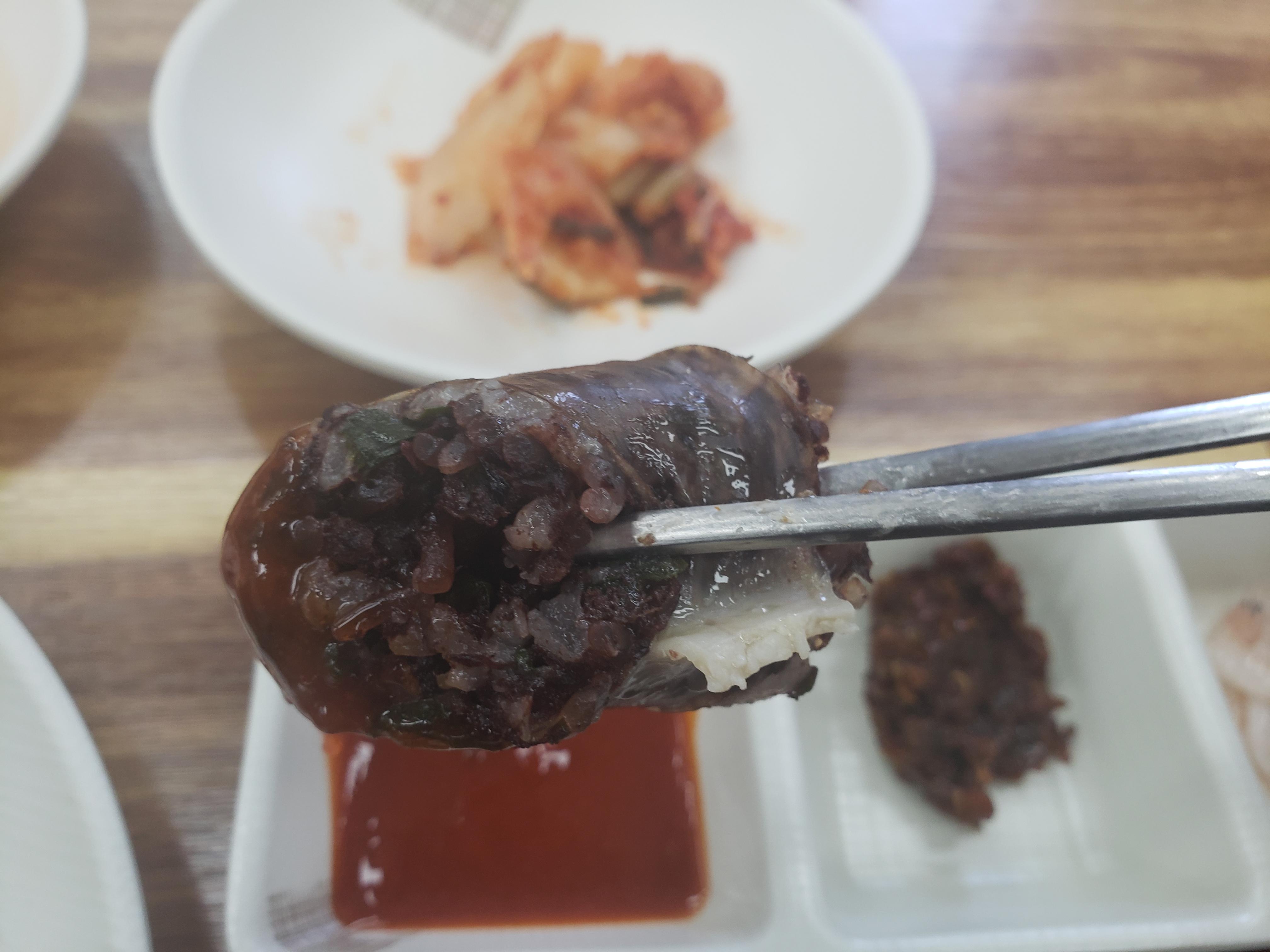 특히 각종 나물이 들어간 쫀득한 찹쌀순대에 우거지는