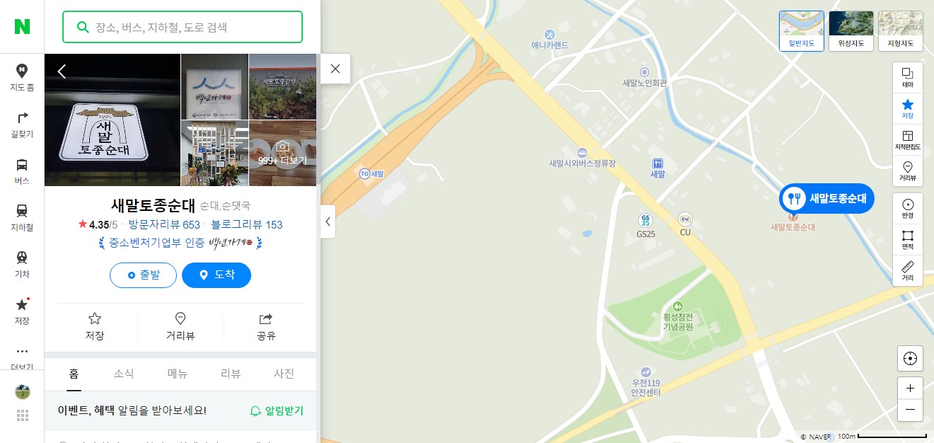 특히 아까 언급한 뉴 새말 토종순대국집과은 큰 도로변에 위치해 있고