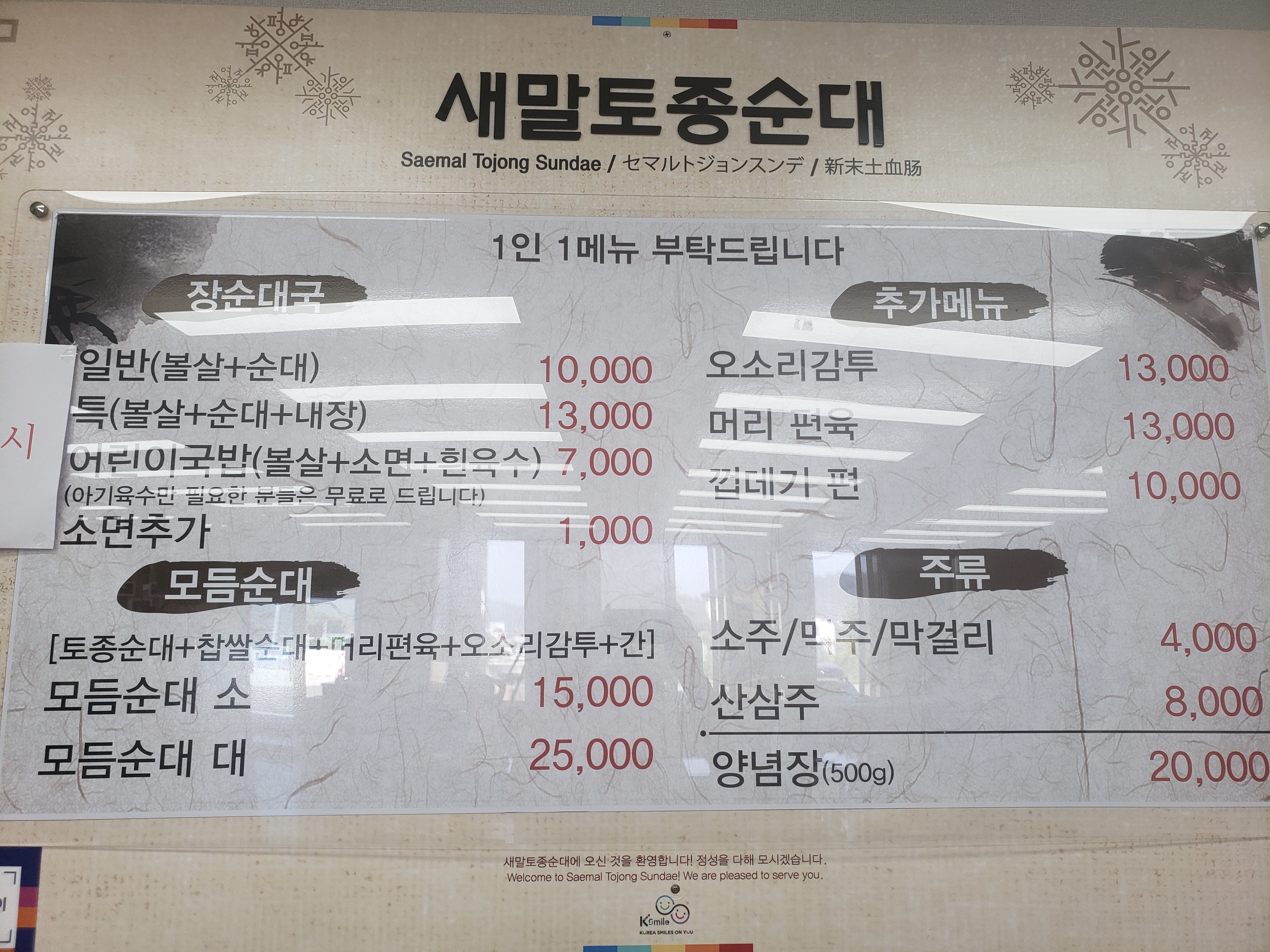 새말토종순대 메뉴판입니당~