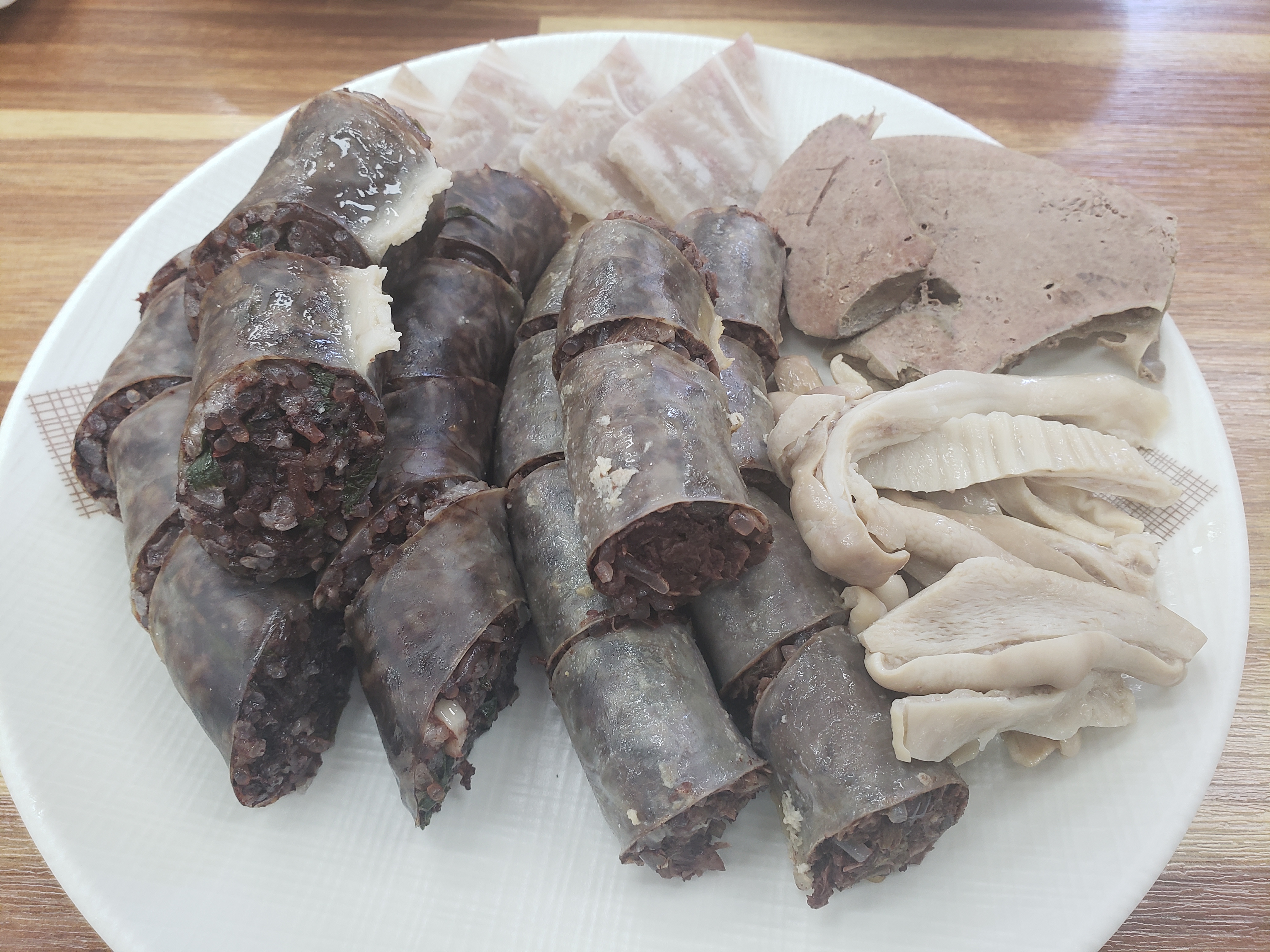 큼직하게 썬 토종순대에 오소리감투, 편육, 간 이렇게 나오네용