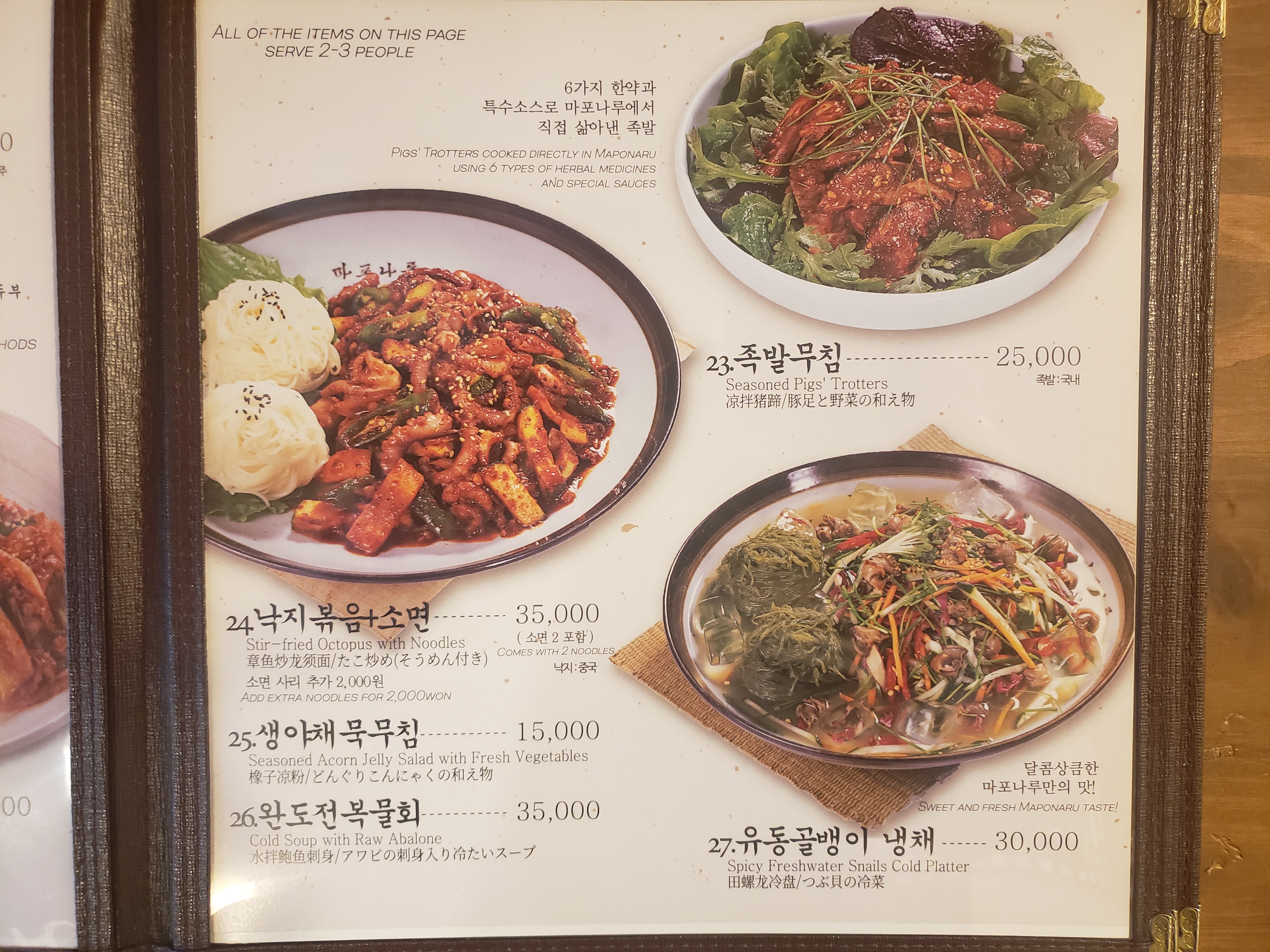 그래도 대표음식은 매콤한 닭찜, 해물파전, 보쌈, 낙지볶음 등이 아닐까 싶네염