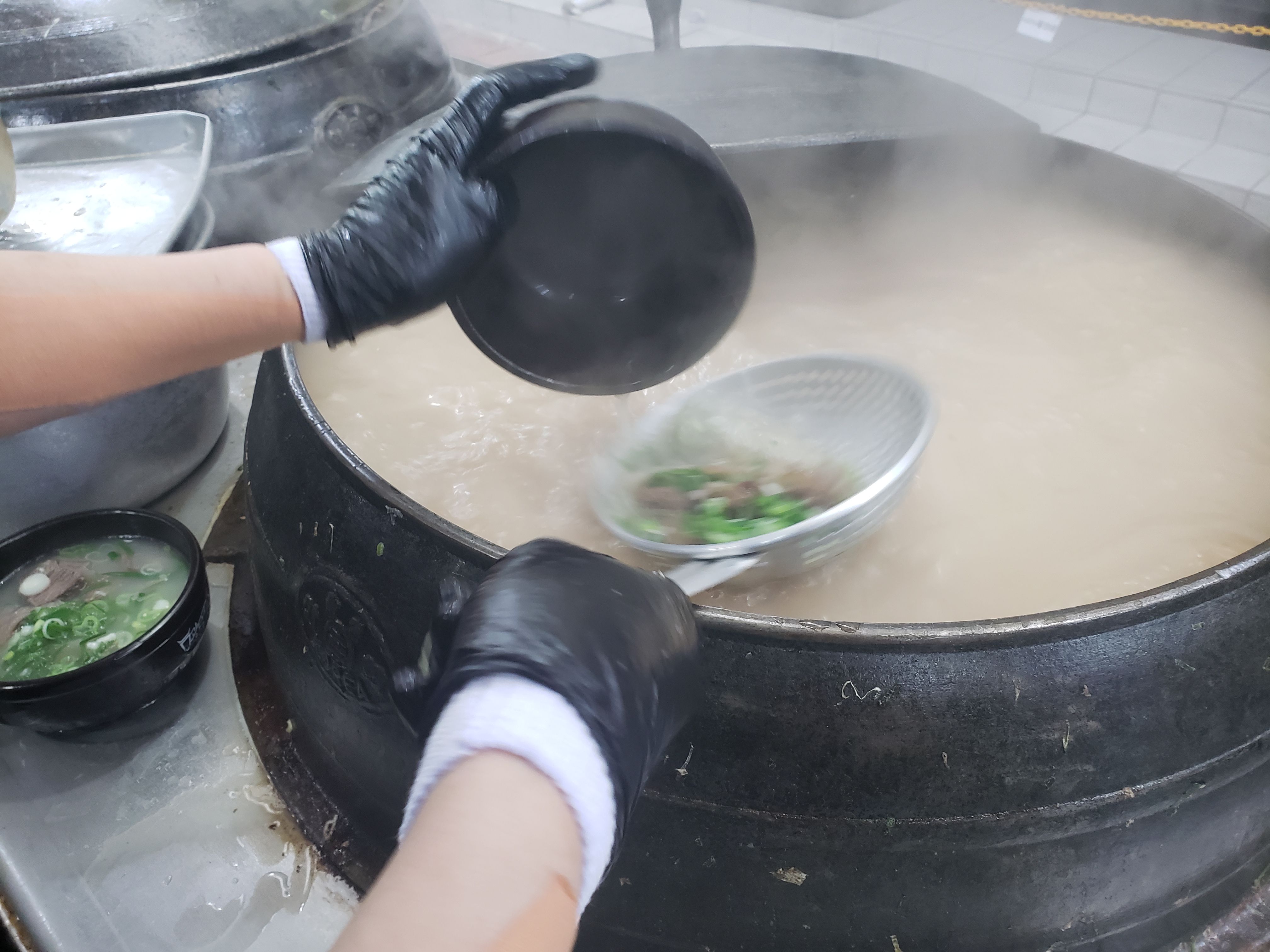 뽀얀국물에, 찐득한 머릿고기에 파송송송...